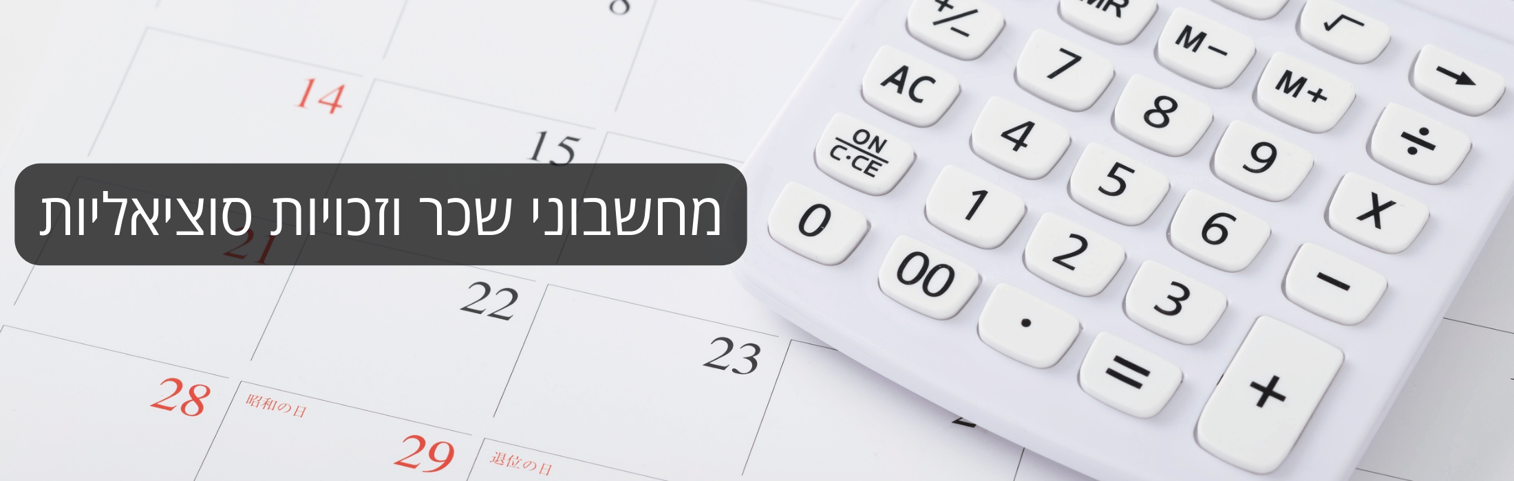 מחשבוני שכר וזכויות סוציאליותברוכים הבאים למרכז המחשבונים. כאן תוכלו לבדוק את זכויותיכם ולקבל אומדן כספי מדויק במגוון נושאים: החל מחישוב שכר נטו, דרך הפרשות לפנסיה וקרן השתלמות, ועד לחישוב פיצויי פיטורים ופדיון ימי חופשה. הכלים פשוטים לשימוש, מעודכנים לשנת המס הנוכחית ומספקים תוצאות מידיות. |